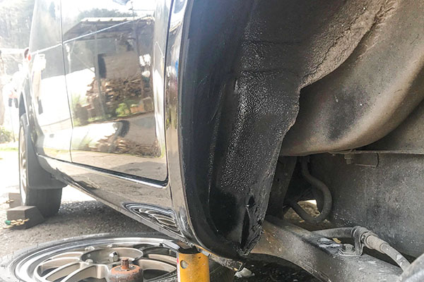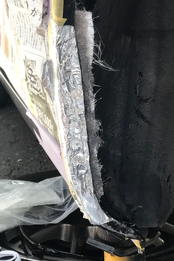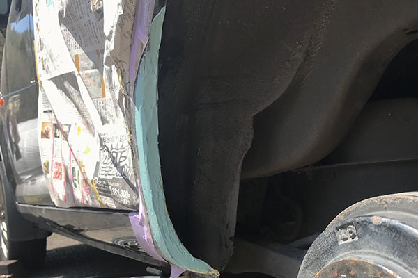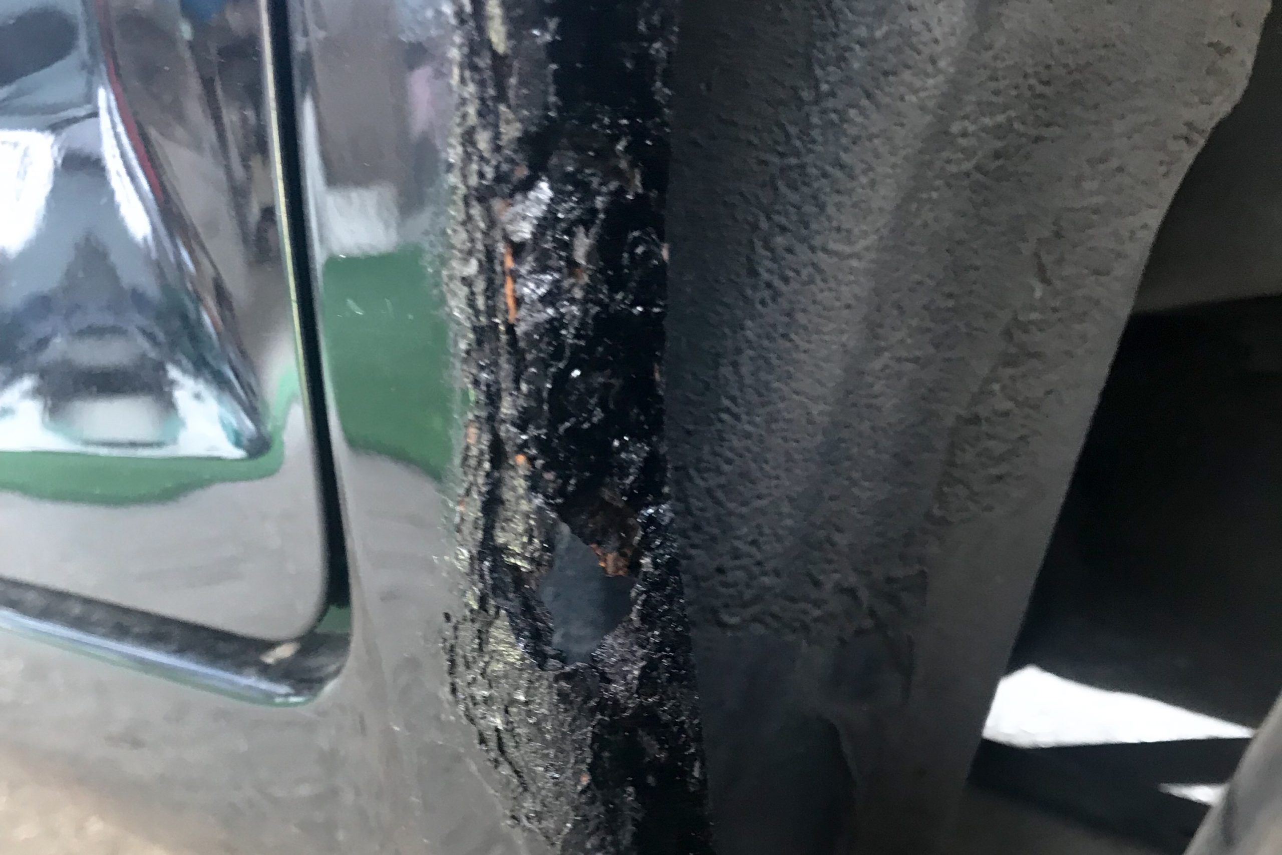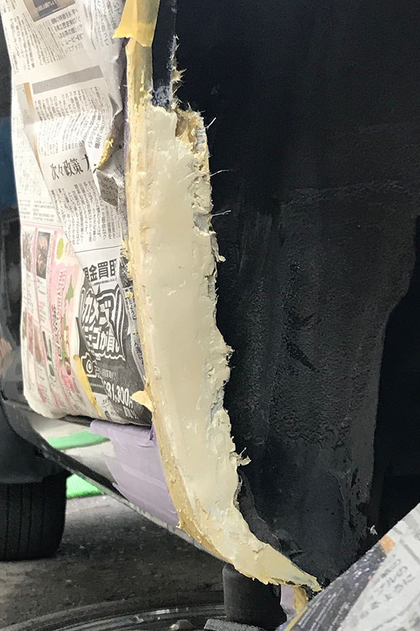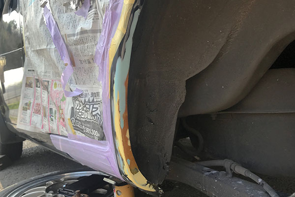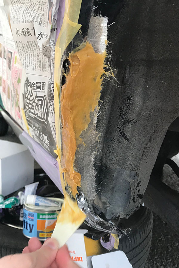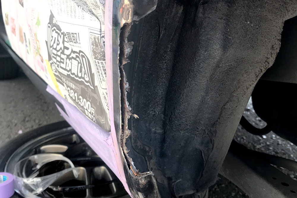 今あるさびを叩いて落としたところ、フェンダーに穴が開きました。