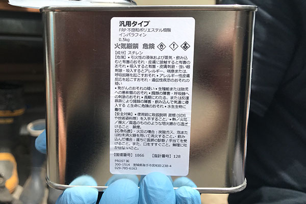 まずはFRP硬化剤を作ります。今回は某密林で購入したFRP補修キットを使用します。