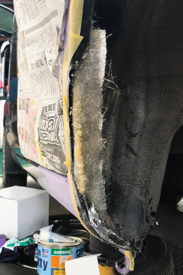先日穴が開いたEKワゴンのリアフェンダーを直しました。使用した材料は、